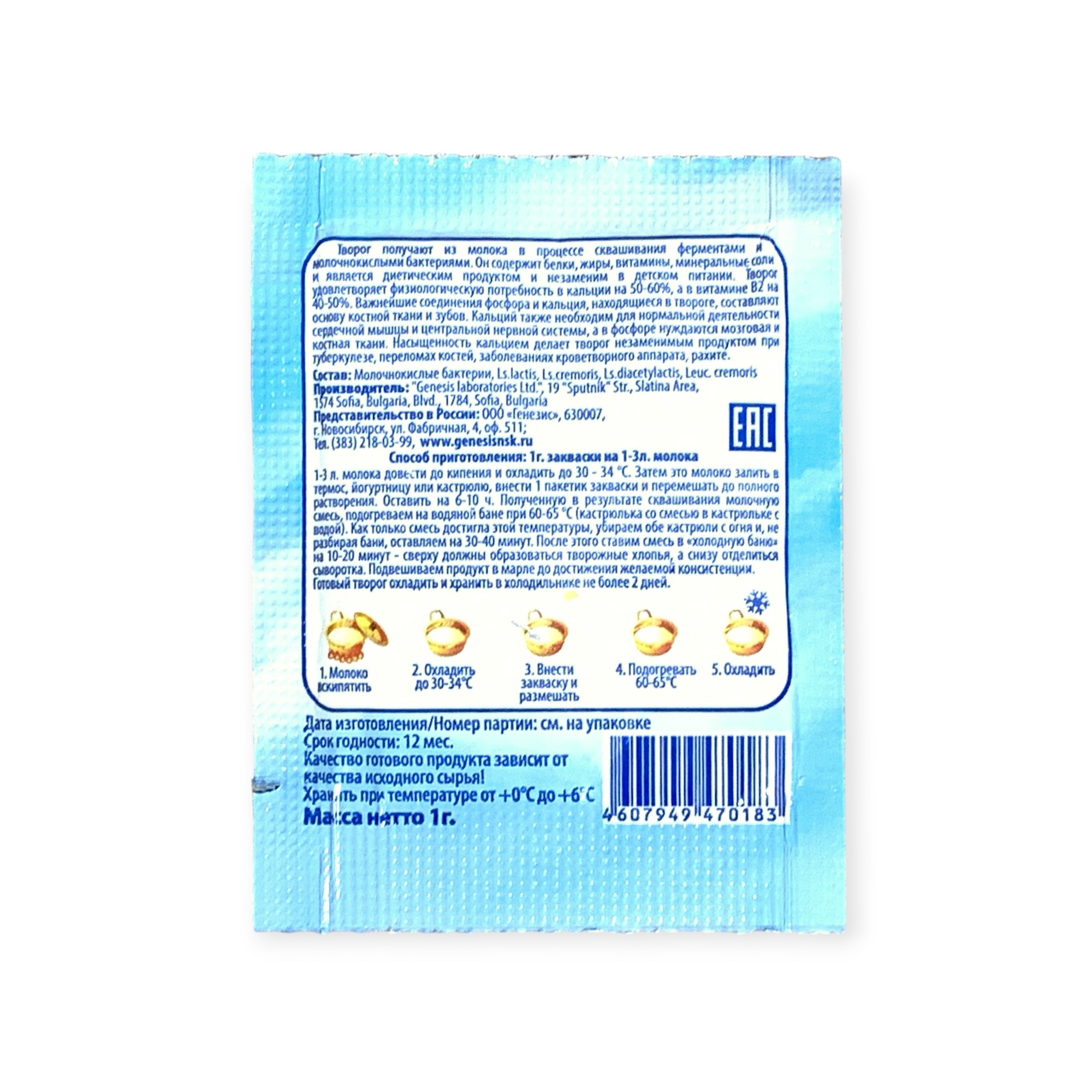 Закваска Творожок Genesis, 1 пакет от 100 руб. с доставкой. Пункт выдачи в Уварово. Интернет магазин по сыроделию. Всё всегда в наличии.